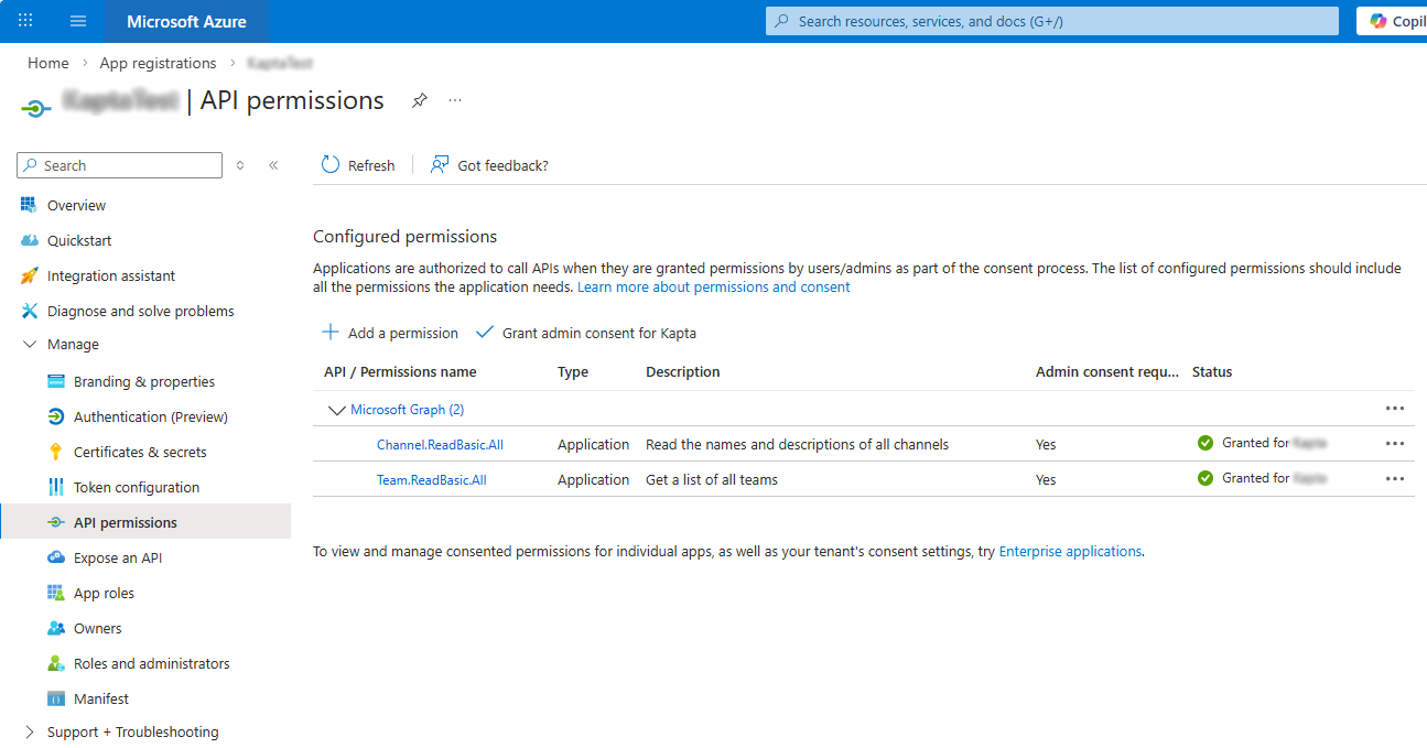 Assigning a Kapta account to a specific Teams channel: