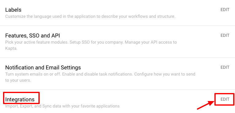 Click the Edit link for Integrations.