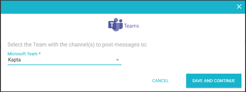 In Kapta, after saving the Azure API and Teams Workspace settings, you can choose the Team you'd like Kapta messages to be posted into.