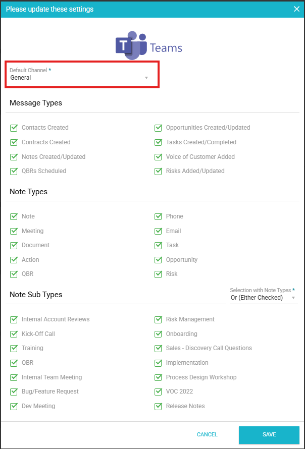 When using Microsoft Teams Integration, messages can be auto-generated for changes to accounts and customer contacts. This page describes how to set up integration for Microsoft Teams.